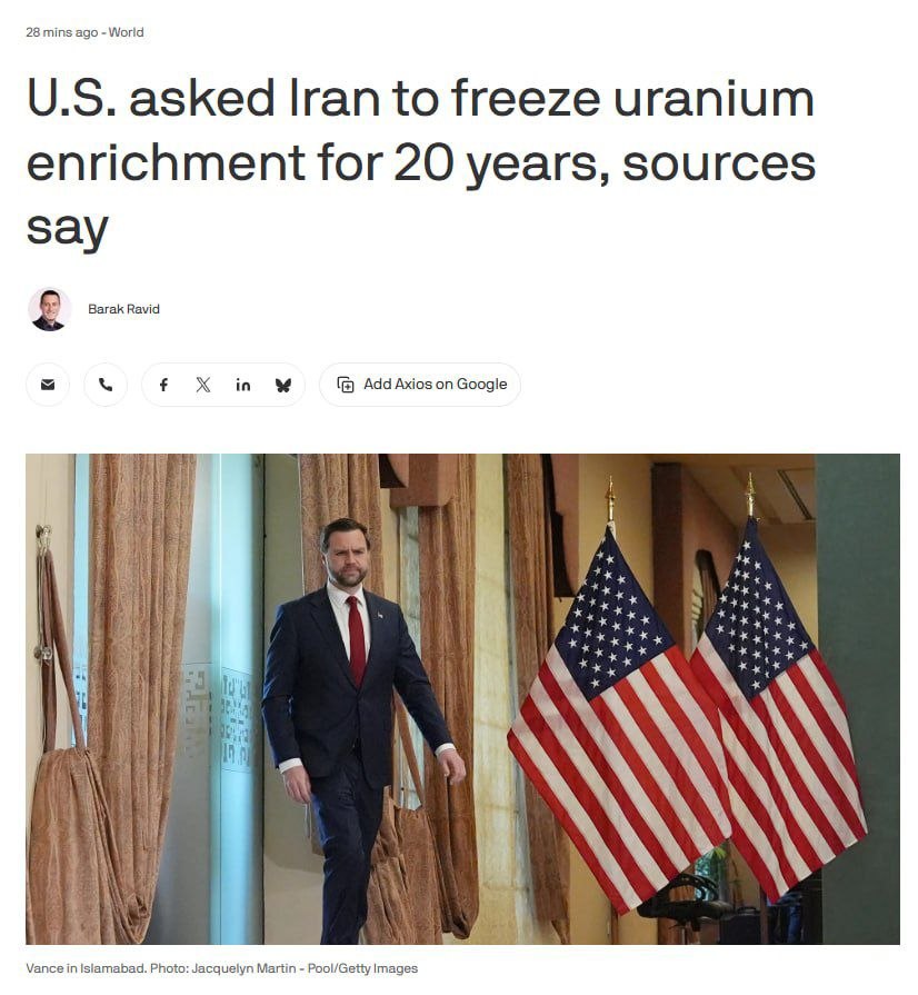 ➡️ In the talks, the US proposed that Iran halt uranium enrichment for 20 years.
